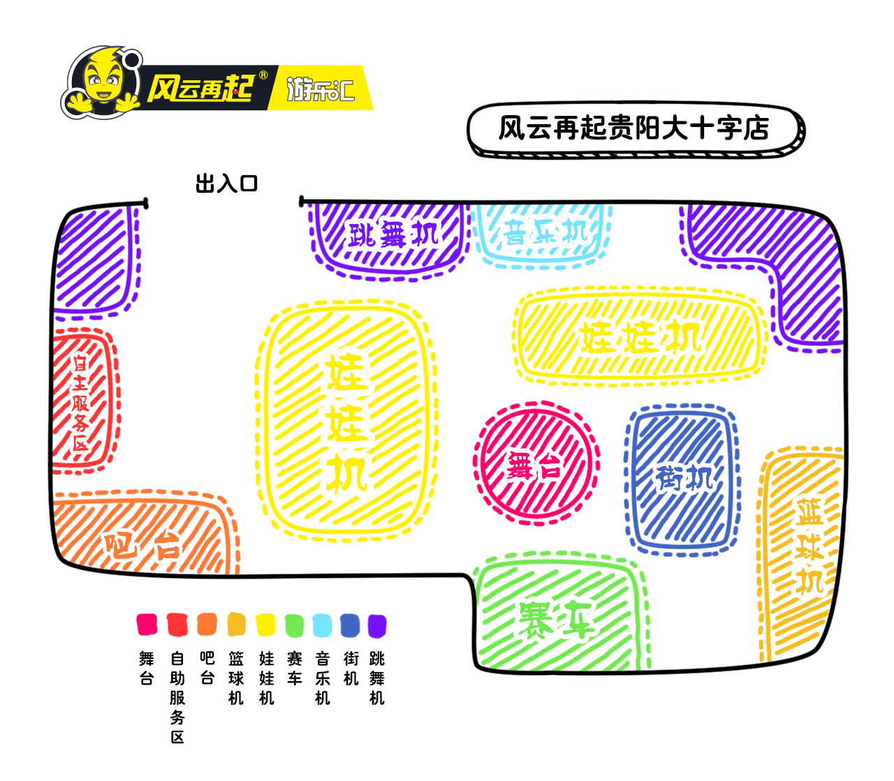 主推机台:极速摩托、小爪机、舞立方、E舞成名、篮球机